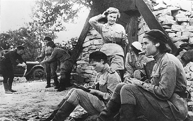 Mulheres defendendo uma base contra ataques alemãs na Segunda Guerra Mundial