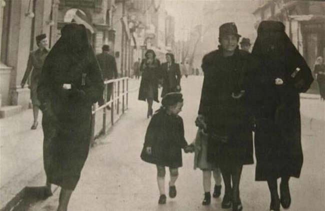 Muçulmana com sua hijab esconde a estrela amarela de seu vizinho judeu para protegê-lo contra seus perseguidores. Sarajevo, Antiga Iugoslávia, 1941